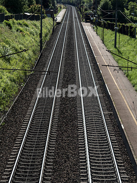 Beschreibung Schienen einer Bahnstrecke. Gleise in die Ferne