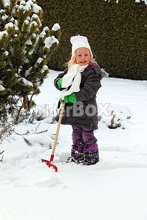 Beschreibung Schnee schaufeln mit Schneeschippe im Winter