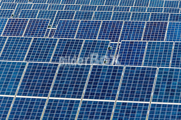 Beschreibung Panele eines Solarkraftwerkes. Sonnenenergie ist nachhaltug und umweltfreundlich.