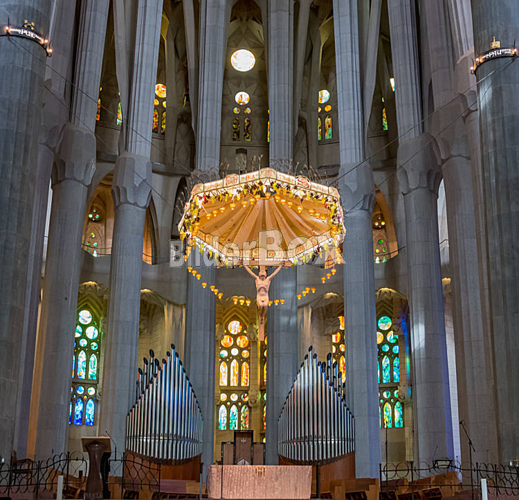 Beschreibung Spanien, Barcelona. Kirche SAGRADA FAMILIA, Innenaufnahme. NUR FÜR REDAKTIONELLE VERWENDUNG!