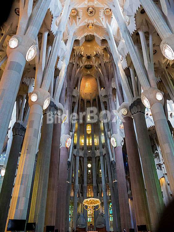 Beschreibung Spanien, Barcelona. Kirche SAGRADA FAMILIA, Innenaufnahme. NUR FÜR REDAKTIONELLE VERWENDUNG!