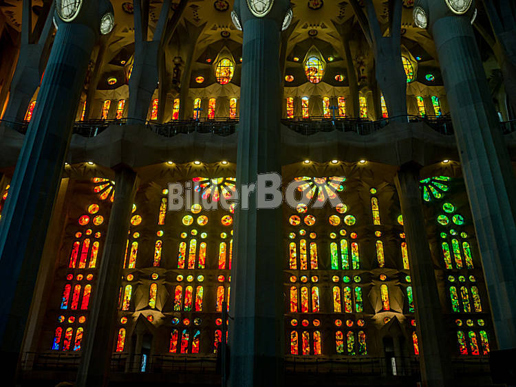 Beschreibung Spanien, Barcelona. Kirche SAGRADA FAMILIA, Innenaufnahme. NUR FÜR REDAKTIONELLE VERWENDUNG!