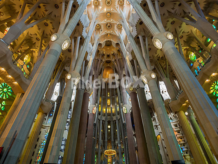 Beschreibung Spanien, Barcelona. Kirche SAGRADA FAMILIA, Innenaufnahme. NUR FÜR REDAKTIONELLE VERWENDUNG!