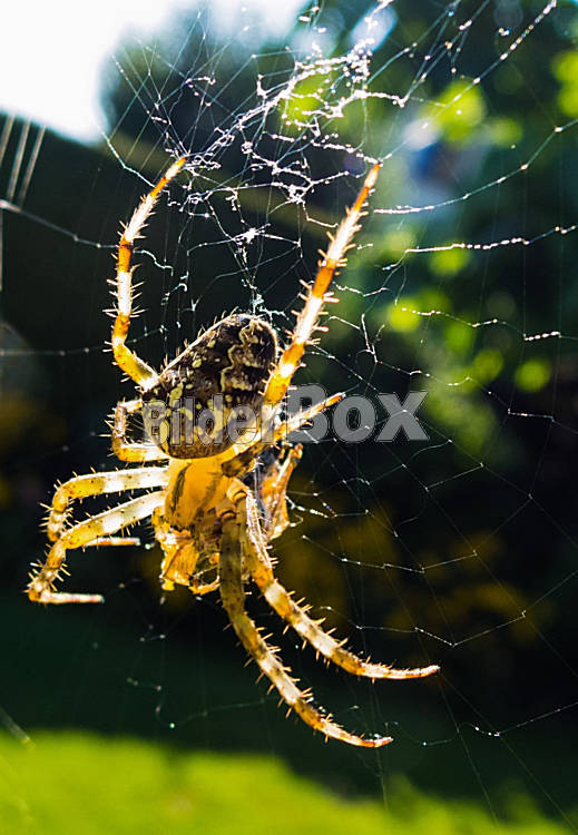 Beschreibung Eine Spinne hat eine Wespe in Ihrem Spinnennetz auf der Jagd gefangen