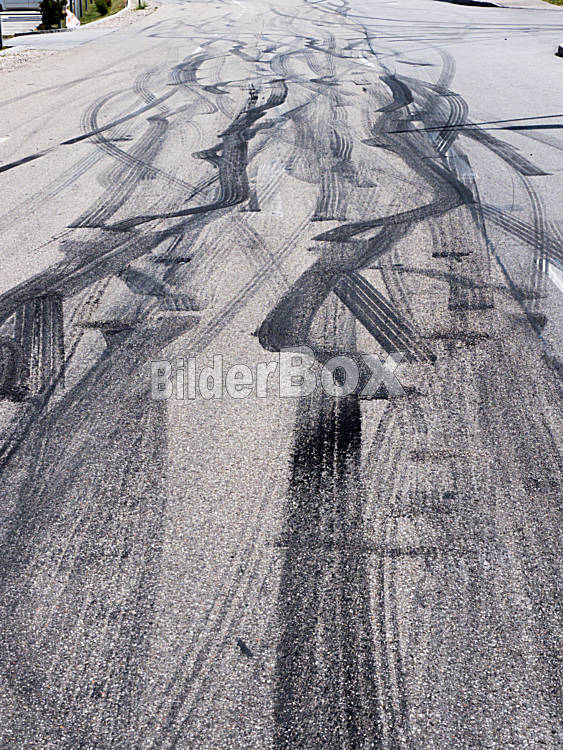 Spuren von Reifen Abnützung auf einer Straße