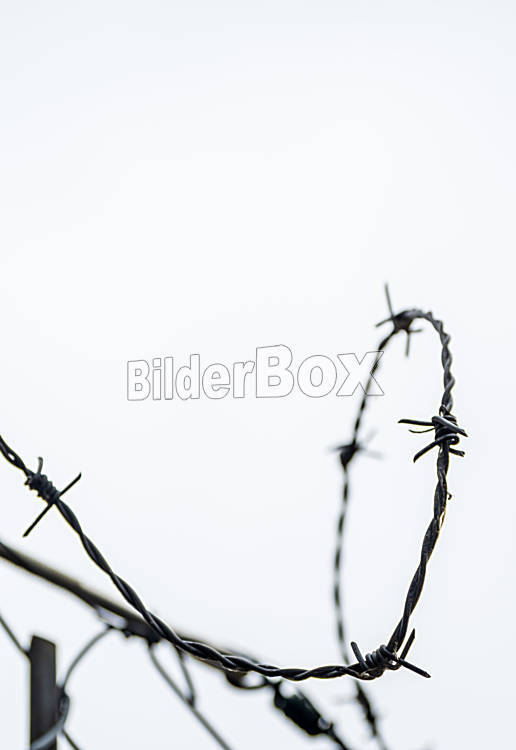 Beschreibung Stacheldraht vor weißem Hintergrund.