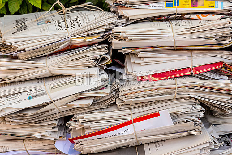 Beschreibung Ein Stapel von alten Zeitungen wartet auf den Abtransport durch Altpapier Entsorgung