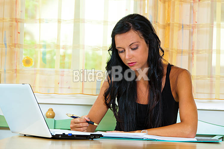 Beschreibung Eine junge Studentin beim lernen für ihr Studium an der Universität