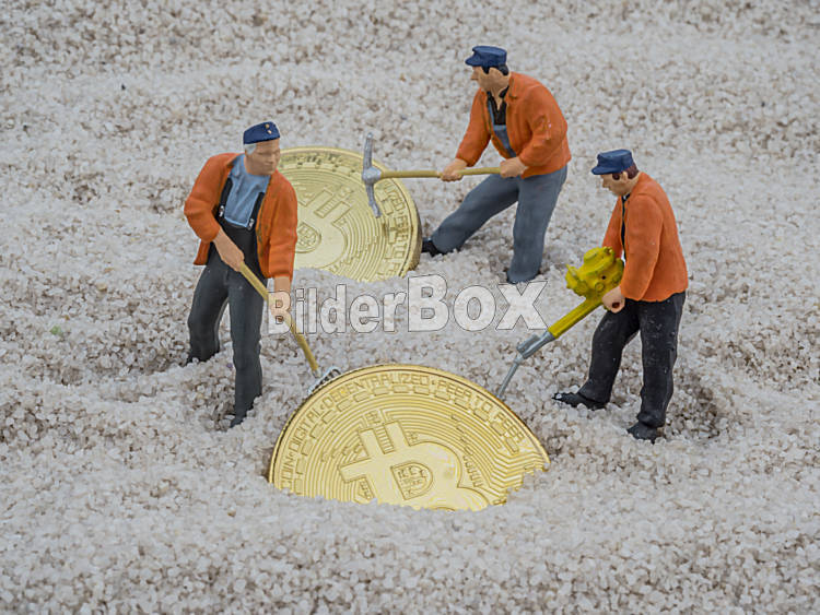Beschreibung Symbolfoto für das Schürfen von Bitcoins in Sand