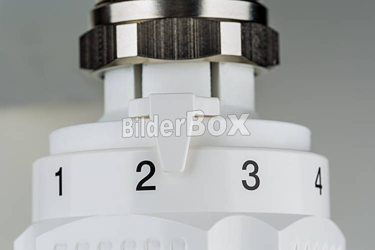 Beschreibung Der Thermostat eines Heizkörpers ist wenig aufgedreht. Niedrige Raumtemperatur spart Heizkosten