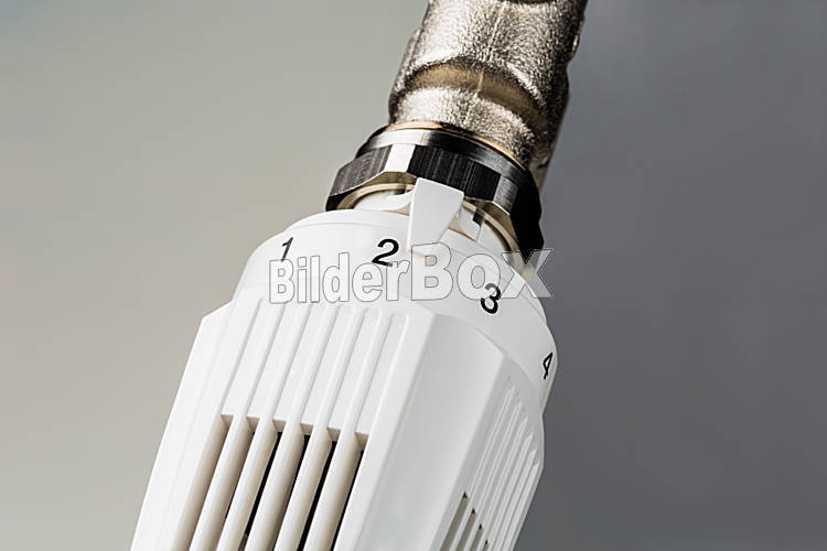 Beschreibung Der Thermostat eines Heizkörpers ist wenig aufgedreht. Niedrige Raumtemperatur spart Heizkosten