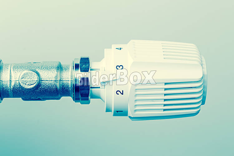 Beschreibung Der Thermostat eines Heizkörpers ist wenig aufgedreht. Niedrige Raumtemperatur spart Heizkosten