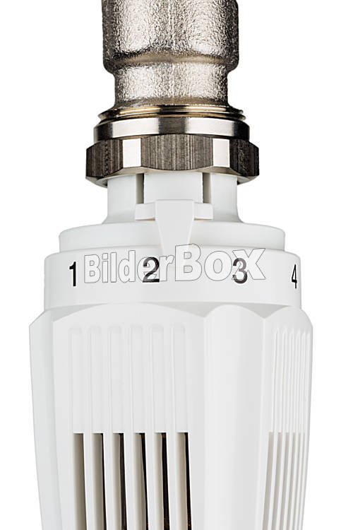 Beschreibung Der Thermostat eines Heizkörpers ist wenig aufgedreht. Niedrige Raumtemperatur spart Heizkosten