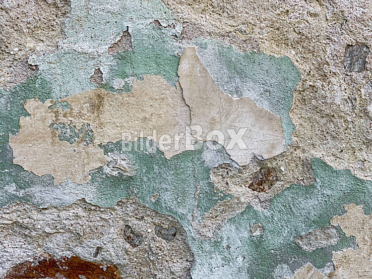 Beschreibung Viele verschiedenfarbige Anstriche auf der Fassde eines alten Hauses in Pastelltönen.