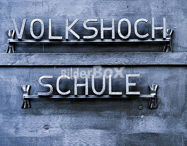 Beschreibung Buchstaben Volkshochschule auf einer Tafel