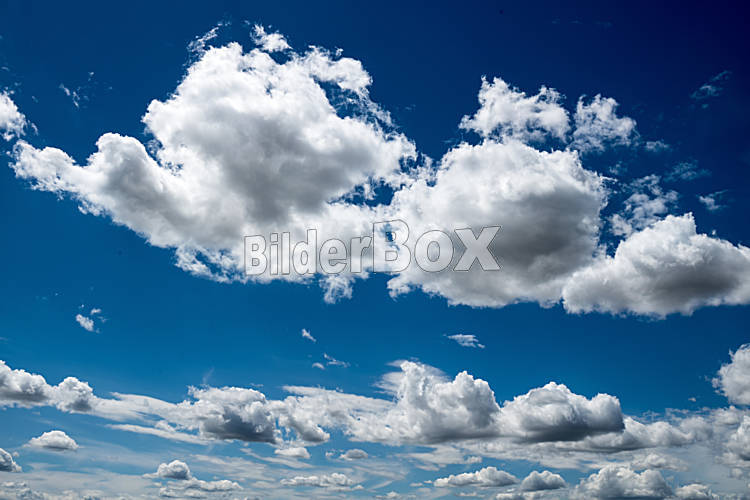 Beschreibung Weiße Wolken. Im Hintergrund ein blauer Himmel. Schöne Landschaft in der Natur. Symbolfoto für Klimaschutz, Klimawandel und Umweltschutz.