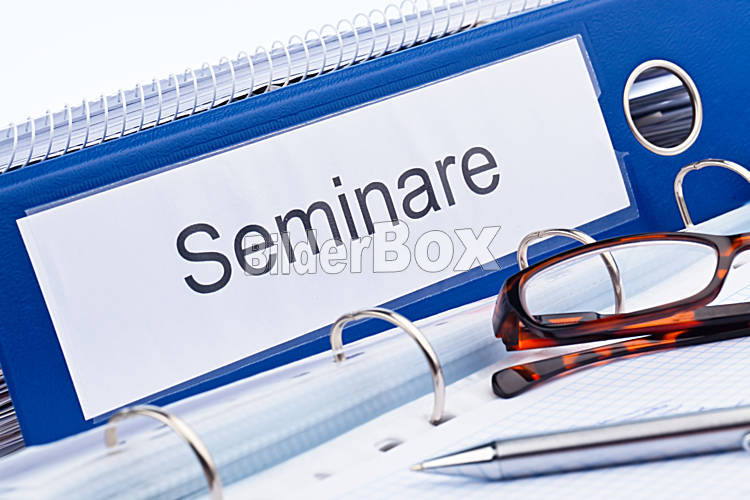 Beschreibung Ein Symbolfoto für Weiterbildung, Fortbildung und Erwachsenenbildung. Mappe und Unterlagen in einem Seminar