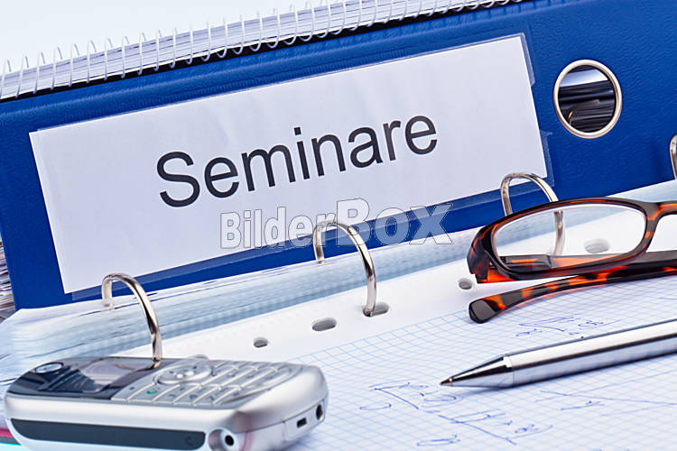 Beschreibung Ein Symbolfoto für Weiterbildung, Fortbildung und Erwachsenenbildung. Mappe und Unterlagen in einem Seminar