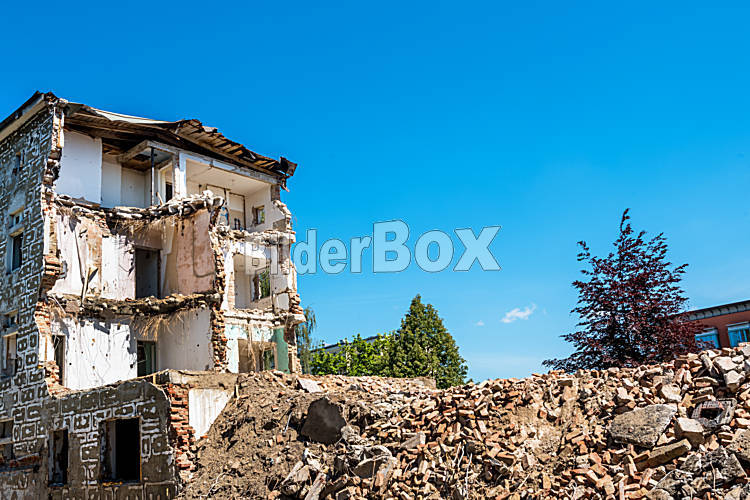 Beschreibung Ein Wohnhaus wird abgerissen um Platz für Neubau zu schaffen
