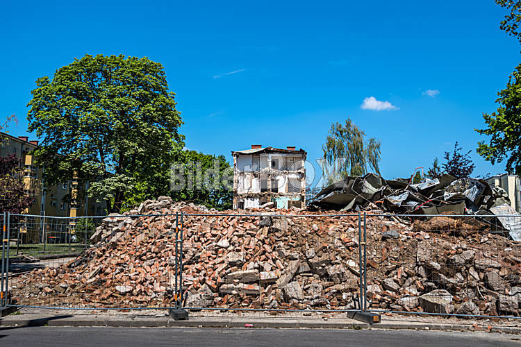 Beschreibung Ein Wohnhaus wird abgerissen um Platz für Neubau zu schaffen
