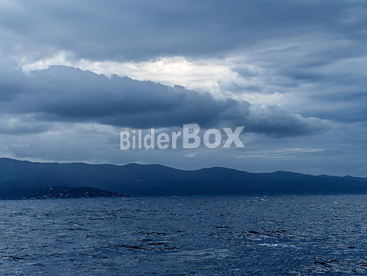 Beschreibung Düstere Wolkenstimmung mit Meer. Symbolbild für Düster, unheimlich und bedrohlich.