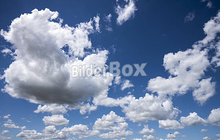 Beschreibung Viele Wolken vor tiefblauem Himmel.