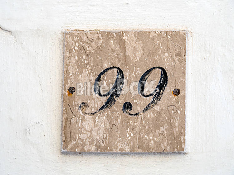 Beschreibung Die Zahl neunundneunzig auf einer Hausmauer