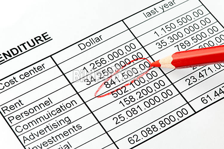 Zahlen einer Statistik mit Rotstift. Amerikanisch.