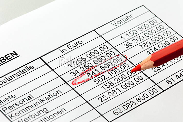 Zahlen einer Statistik mit Rotstift. Deutsch.