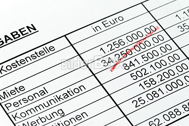 Zahlen einer Statistik mit Rotstift. Deutsch.