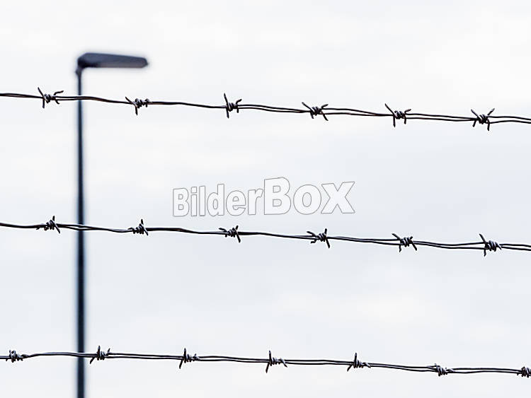 Beschreibung Stacheldraht Zaun. Symbol für Abschiebung und Sicherungshaft