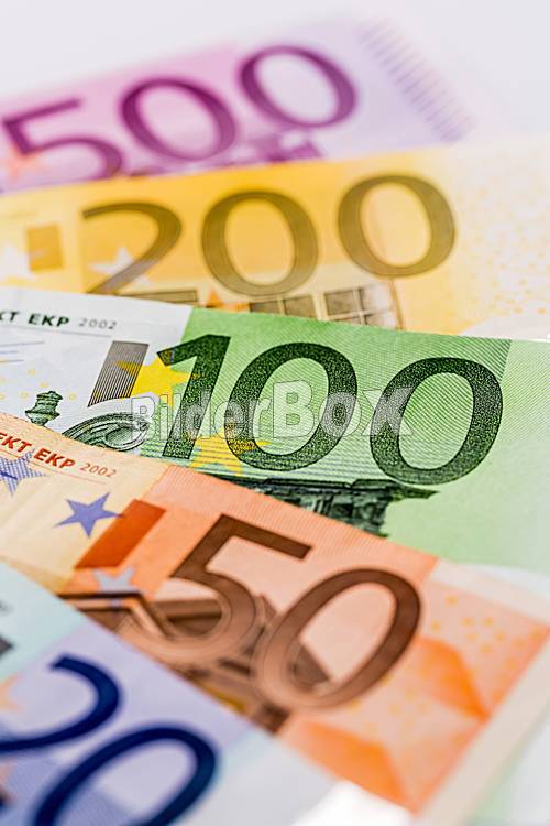 Beschreibung many different euro bills. symbolic photo for wealth and investment.
